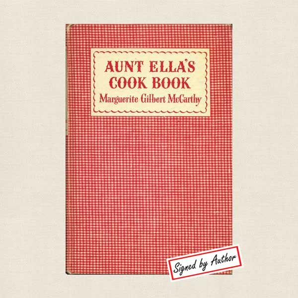 Aunt Ella's Cook Book - Vintage 1949 Signed Edition is inscribed by author Marguerite Gilbert McCarthy. This cookbook offers up cooks a lot of down home comfort food and classic American recipes. Scalloped Potato and Ham, Lobster Stew, New England Boiled Dinner, Nettie's Burnt Sugar Cake, and many more dishes like these are found inside this wonderful vintage cookbook collectible from 1949. The first chapters are stories from the author.